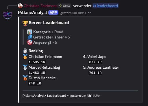 Als Admin habt Ihr die Möglichkeit Ergebnisse von Fahrern zu tracken und diese in einem Kanal zu publizieren.